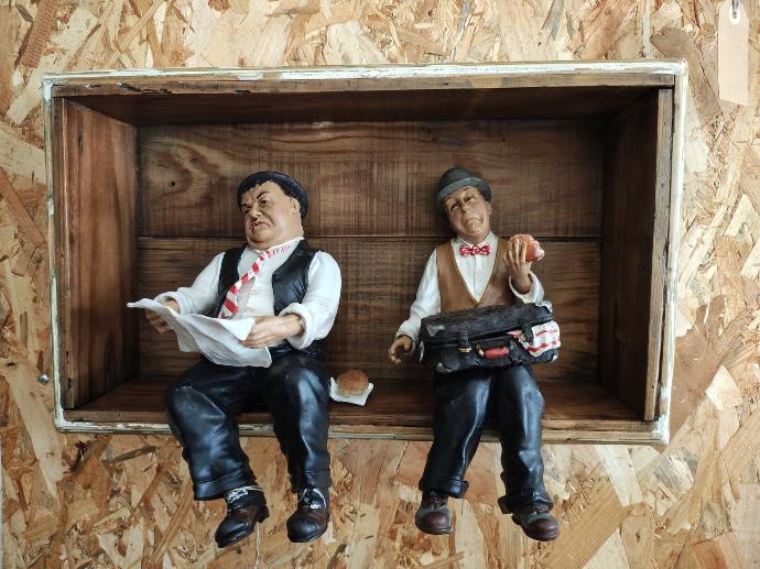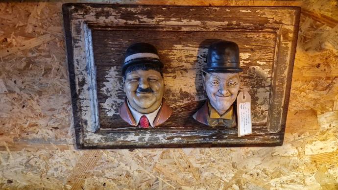 Stan e Ollie (Bucha e Estica), em tábua, bustos antigos com pintura a óleo.