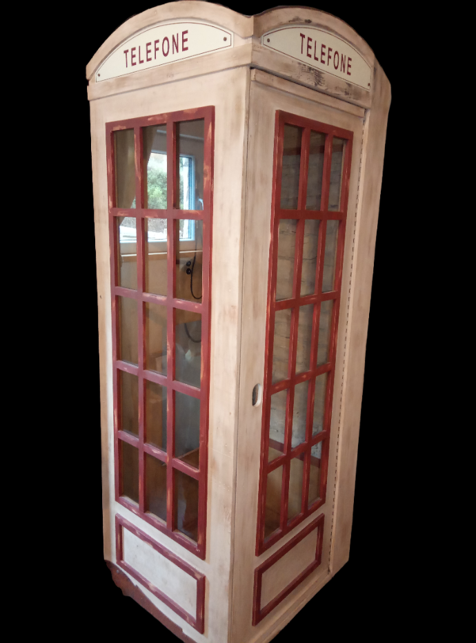 Cabine telefónica, móvel, arrumação, elevador, livreiro ou bar.