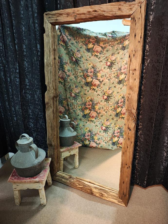 Espelho rústico com madeira de castanho velho, madeira originária de restauro de igreja do Sec. XVIII em Lamego.
