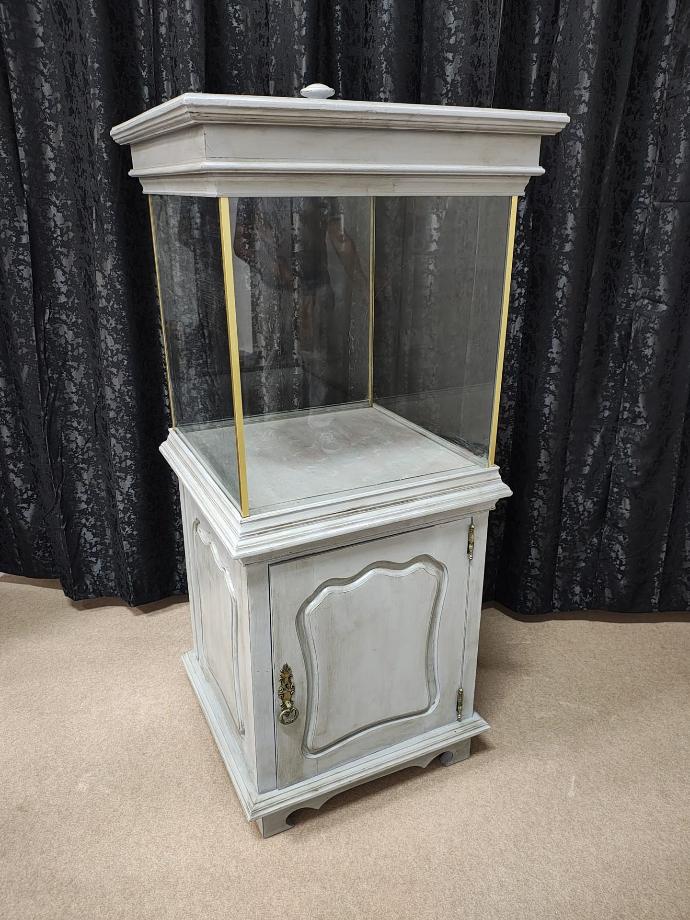 Móvel aquário com base para instalação de equipamento e parte superior para iluminação.