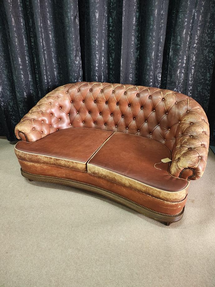 Sofá capitoné em pele de vaca, dois lugares.