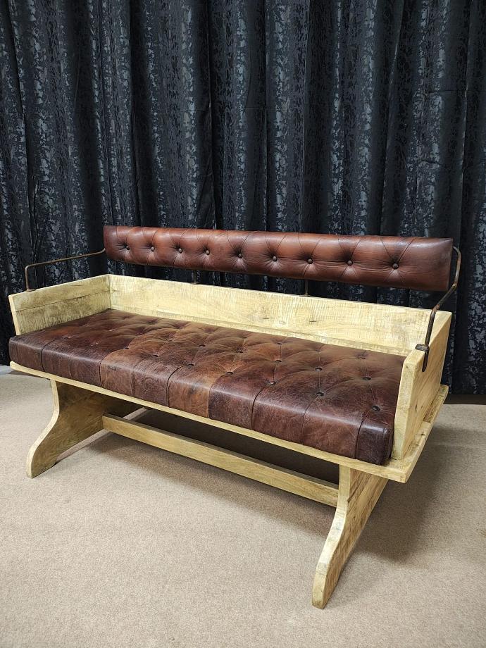 Sofá em madeira de choupo com almofadas em pele de vaca (opção pele de cabra ou tecido)